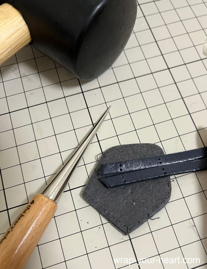 針と糸(普通のやつ)と、革紐に下穴を開けるために目打ちと、家にあったゴムハンマー、カッターマットを使いました。
